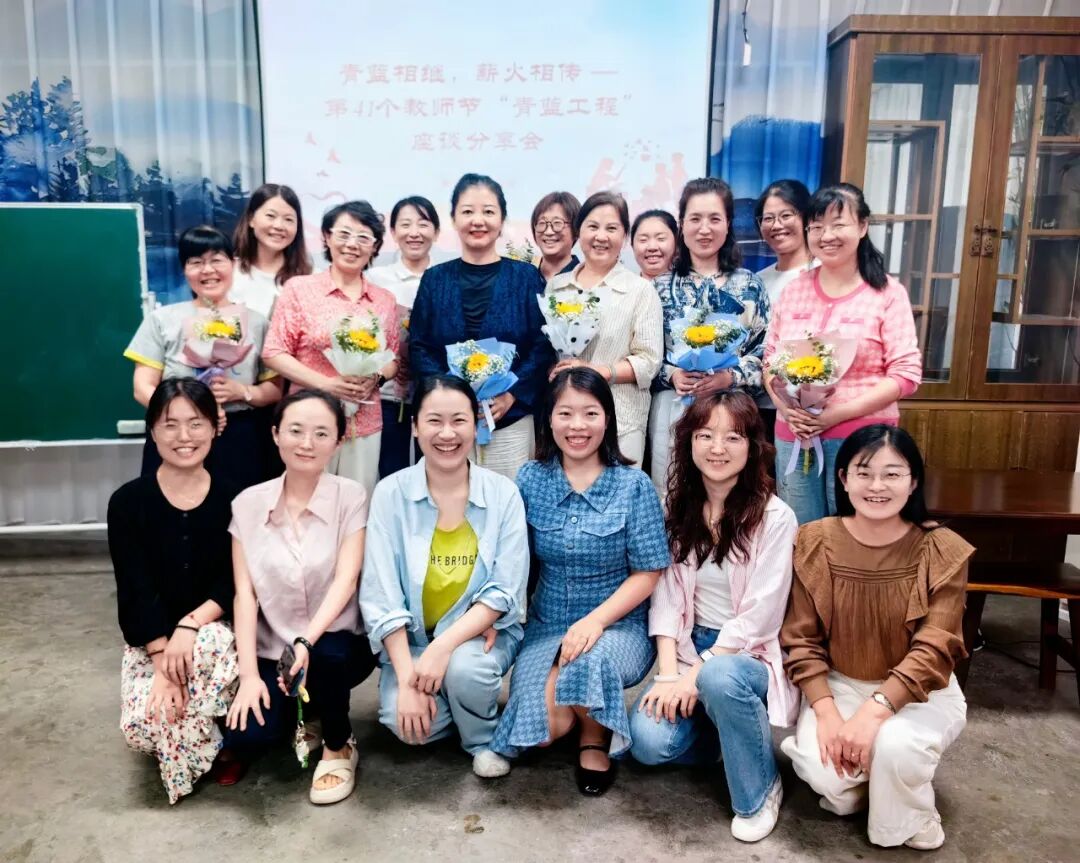 活动最后,“青方”教师向辛勤指导她们的“蓝方”导师敬献鲜花,表达深深的感激与敬意。座谈会在温馨的合影中圆满结束。