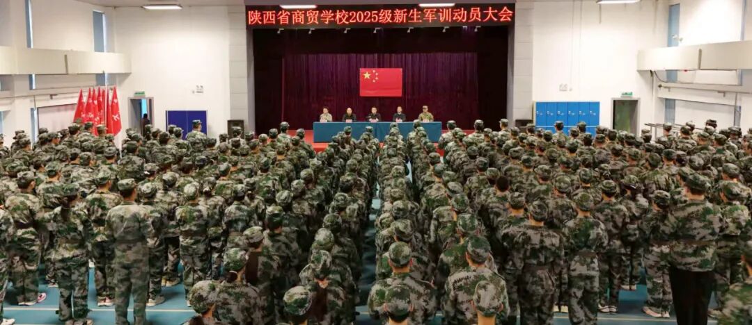 金秋送爽,山河芳华。9月23日上午,陕西省商贸学校礼堂370余名2025级新生身着军训服戎装肃立、队列整齐,以昂扬姿态迎接军训。学校领导出席本次动员大会。