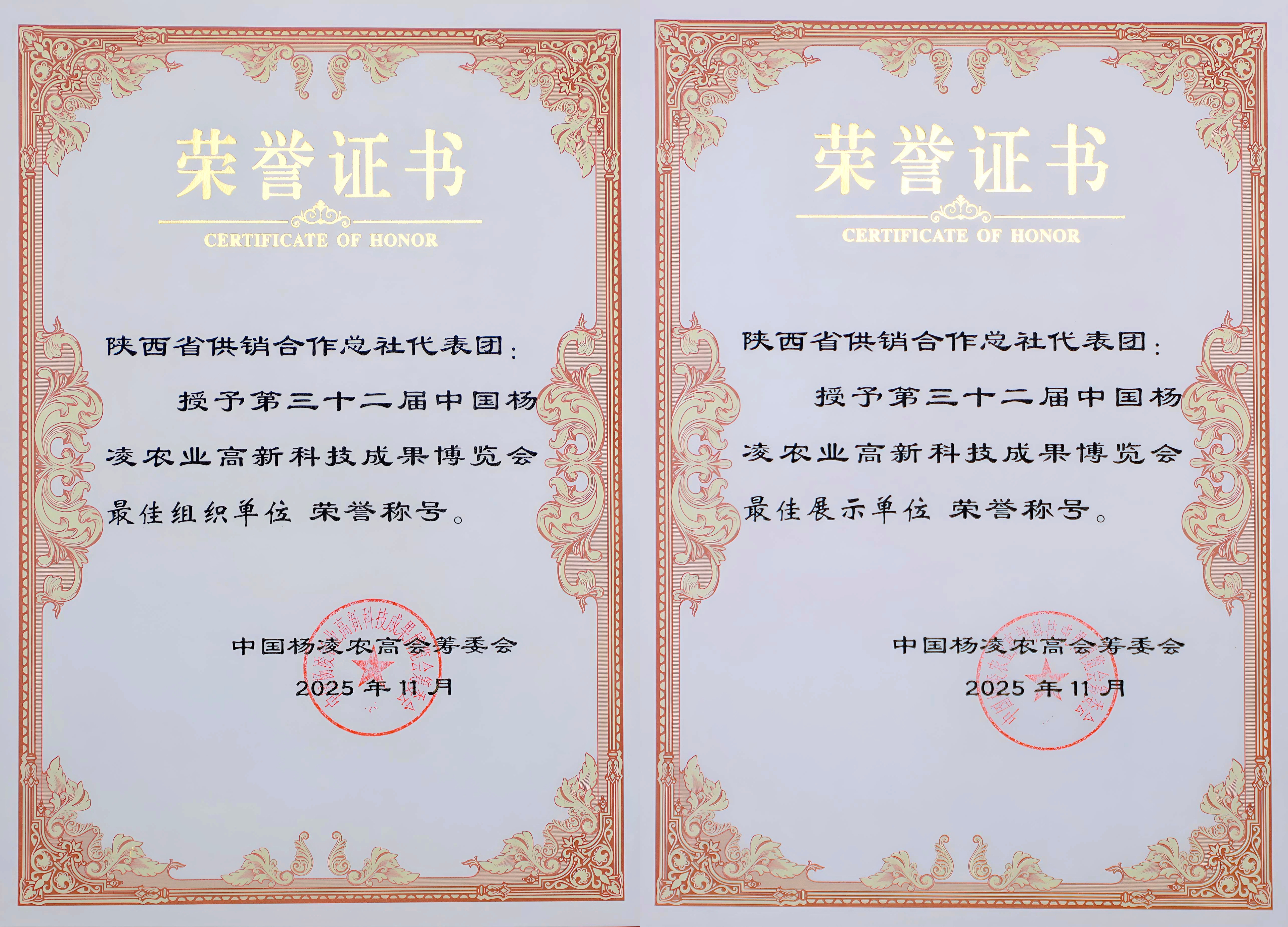 本届农高会,省供销社邀请全国供销总社农资销售平台、农产品销售平台、“832平台”3大平台,济南果品研究所、杭州茶叶研究所、昆明食用菌研究所、西安生漆涂料研究所4个科研院所,同时联动山西、黑龙江、四川、西藏、青海、宁夏6个兄弟省社,形成了全国供销系统协同参展的合力,提升了展会的规格与质量,荣获了中国杨凌农业高新科技成果博览会筹委会颁发的最佳组织单位和最佳展示单位两大奖项。