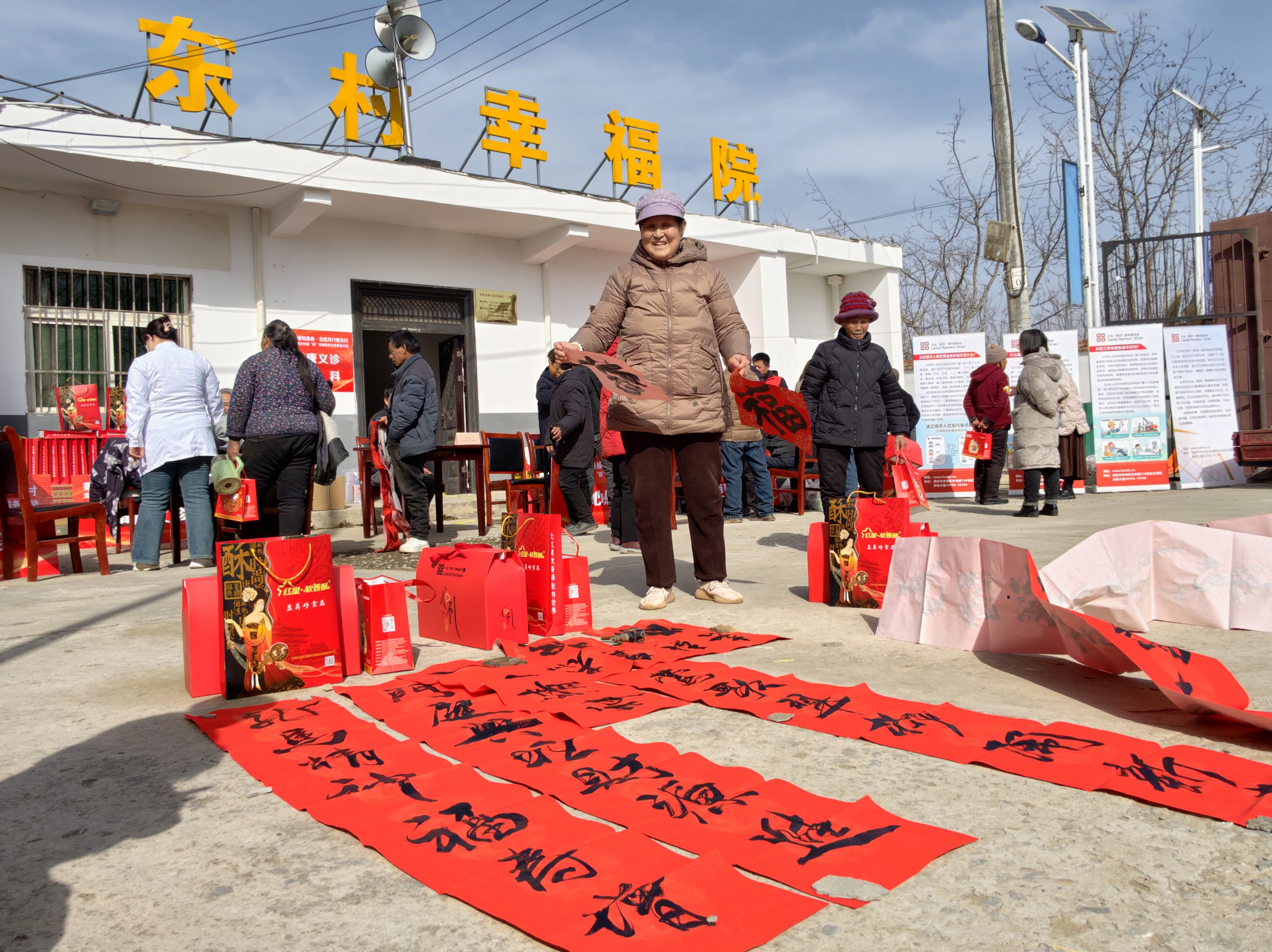 此次活动聚焦村民实际需求开展志愿服务,把关怀送到群众心坎上:书法志愿者现场书写春联福字,送上真挚祝福;爱心义剪团队为老人免费理发,焕发新春神采;医护人员细致开展健康义诊,贴心指导冬季保健;维修志愿者耐心检修小家电、农具,便利日常生活;摄影志愿者为老人拍摄并装裱照片,定格温暖笑脸;法律专家现场解答常见纠纷,送上“法治定心丸”;企业志愿者还送来丰富慰问品,传递社会关爱。